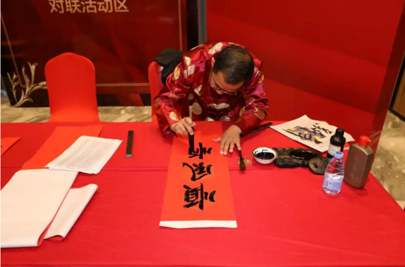 現(xiàn)場寫對聯(lián)贈予業(yè)主