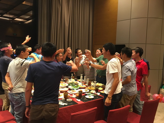 本次生日會(huì)也是中秋國(guó)慶聚會(huì),聚會(huì)上大家紛紛舉杯暢飲,大家其樂融融,幸??M繞其中。