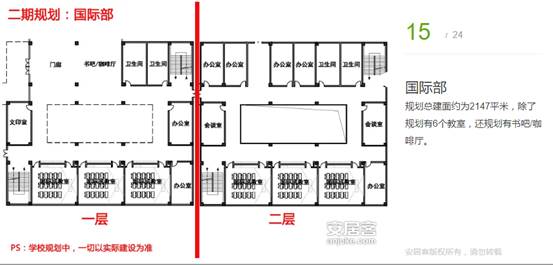 規(guī)劃總建面約為2147平米,除了規(guī)劃有6個(gè)教室,還規(guī)劃有書(shū)吧/咖啡廳。
