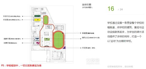 學(xué)校通過(guò)設(shè)置一條貫穿整個(gè)學(xué)校的慢跑道,將學(xué)校的建筑、景觀(guān)與運(yùn)動(dòng)設(shè)施聯(lián)系起來(lái),為學(xué)生的課外活動(dòng)提供了多樣的場(chǎng)所,打造一個(gè)以“運(yùn)動(dòng)”為主題的學(xué)校。