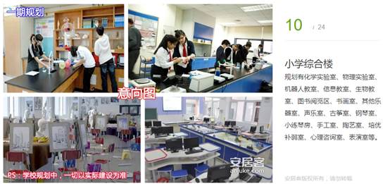 規(guī)劃有化學(xué)實(shí)驗(yàn)室、物理實(shí)驗(yàn)室、機(jī)器人教室、信息教室、生物教室、圖書(shū)閱覽區(qū)、書(shū)畫(huà)室、其他樂(lè)器室、聲樂(lè)室、古箏室、鋼琴室、小練琴房、手工室、陶藝室、培優(yōu)補(bǔ)弱室、心理咨詢(xún)室、表演室等。