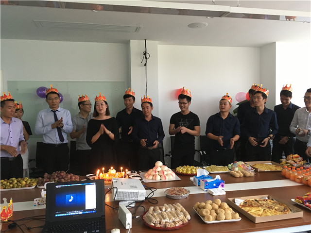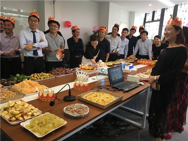 2016年9月14日,華威公司在千花島營(yíng)銷(xiāo)中心會(huì)議室舉辦了簡(jiǎn)單而熱鬧的“2016年第三季度員工生日會(huì)”,人資行政部精心準(zhǔn)備了實(shí)用的禮物和豐盛的美食,為26位壽星慶祝。
